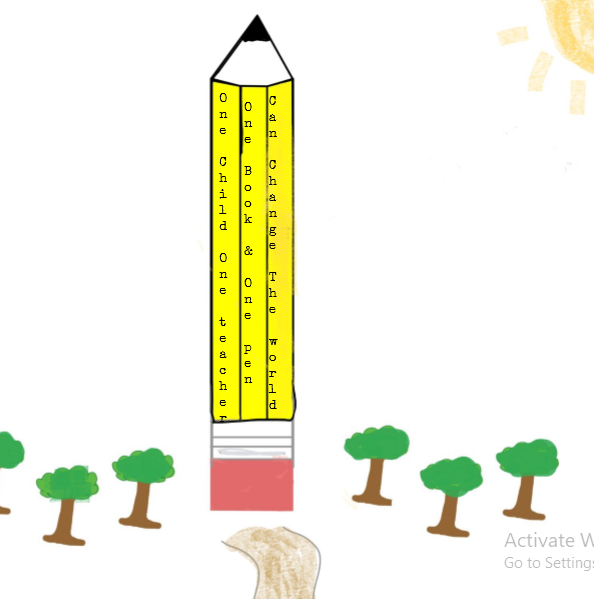 Malala Yousafzai inspired me to create this monument. She persevered and showed strength. My monument has one of her most famous quotes “one child, one teacher, one book and one. pen can change the world.” The pencil reminds me of education and how important it is so the shape of my monument is a pencil. I want my monument to be in a beautiful and peaceful place that’s why it has trees around it. Thank you for reading.