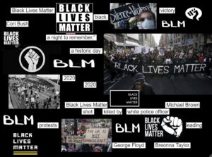 I mostly wanted to use simple black and white images to get my point across because they give off a serious tone and have a contrast that really draws the eye. I wanted my message to be bold and in your face wherever you look at my collage so I used many of the same and similar images. BLM is more than just a hashtag. Its more than just a protest. It’s a continuous state of mind that should not be argued. This shouldn’t be political. Black Lives Matter is a movement.