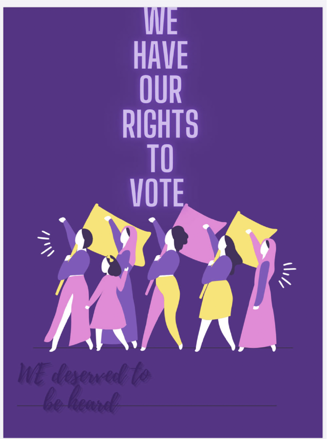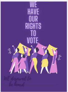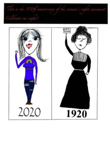 The place where the text is (it says ” This is the 100th anniversary of the women’s rights movement! Celebrate our rights!”) isn’t part of the 10×10, just the two drawings. This drawing is supposed to show that women have had rights for 100 years, and we are still counted out of things. For example, society won’t let us play football because we’re too “fragile” or “delicate”. This is garbage. If men can do it, women can do it. Another example: lacrosse. Boys get to play rough and tackle and check and bump into each other. For the same reason women aren’t allowed to play football, we aren’t allowed to be tough or rough when we play lacrosse. They make way more rules for girls, and it’s unnecessary and EXTREMELY sexist, even if you don’t think you’re doing anything.