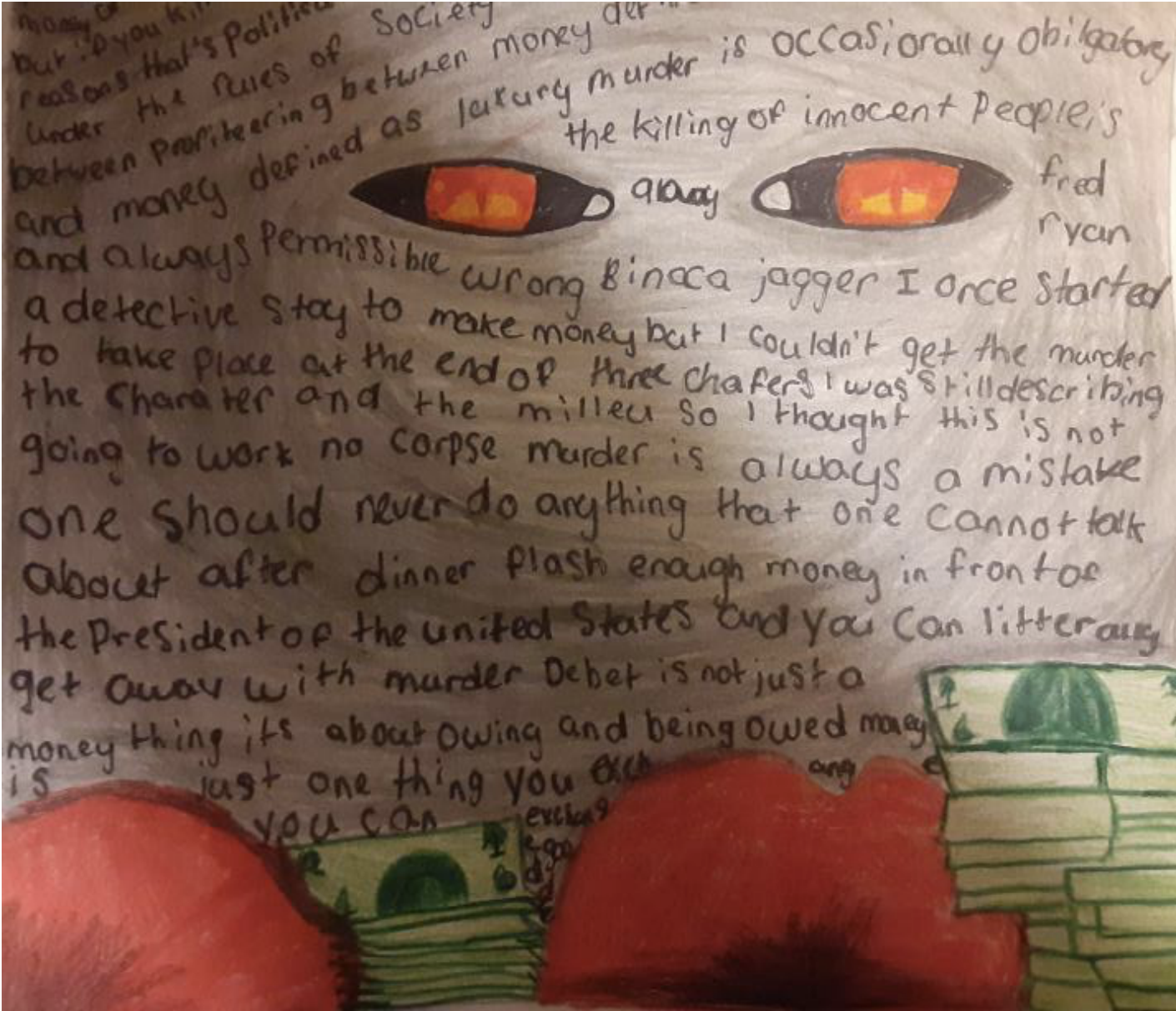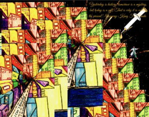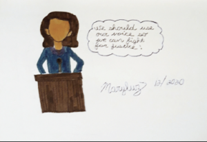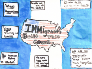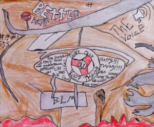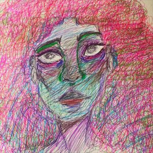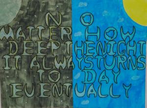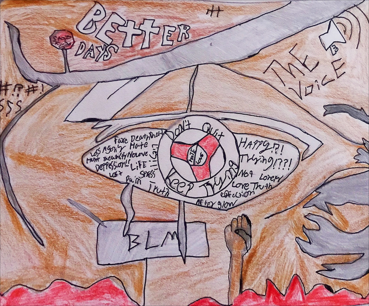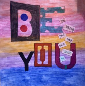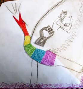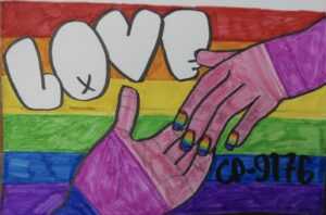 I wanted to talk about LGBTQ+ youth, specifically bisexual youth because there are a lot of kids who feel like they don’t belong in the community. I love to draw hands so I put that into my art.