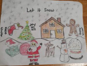 My intention is to show different events that occur during the winter. The holiday and atmosphere outside during this season is what inspired me. I want the viewers to know that I love to draw and love to use different features to create my art work.