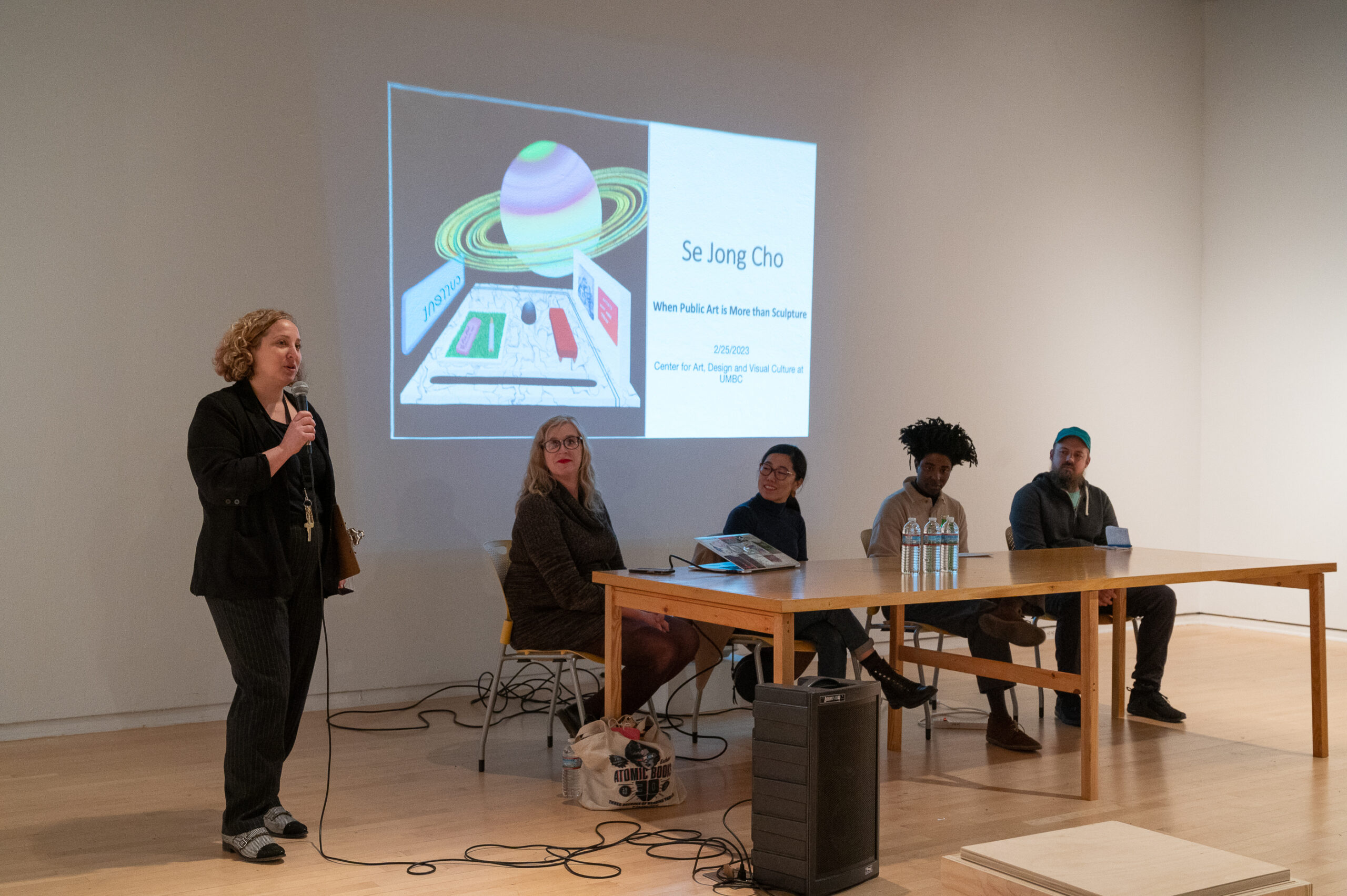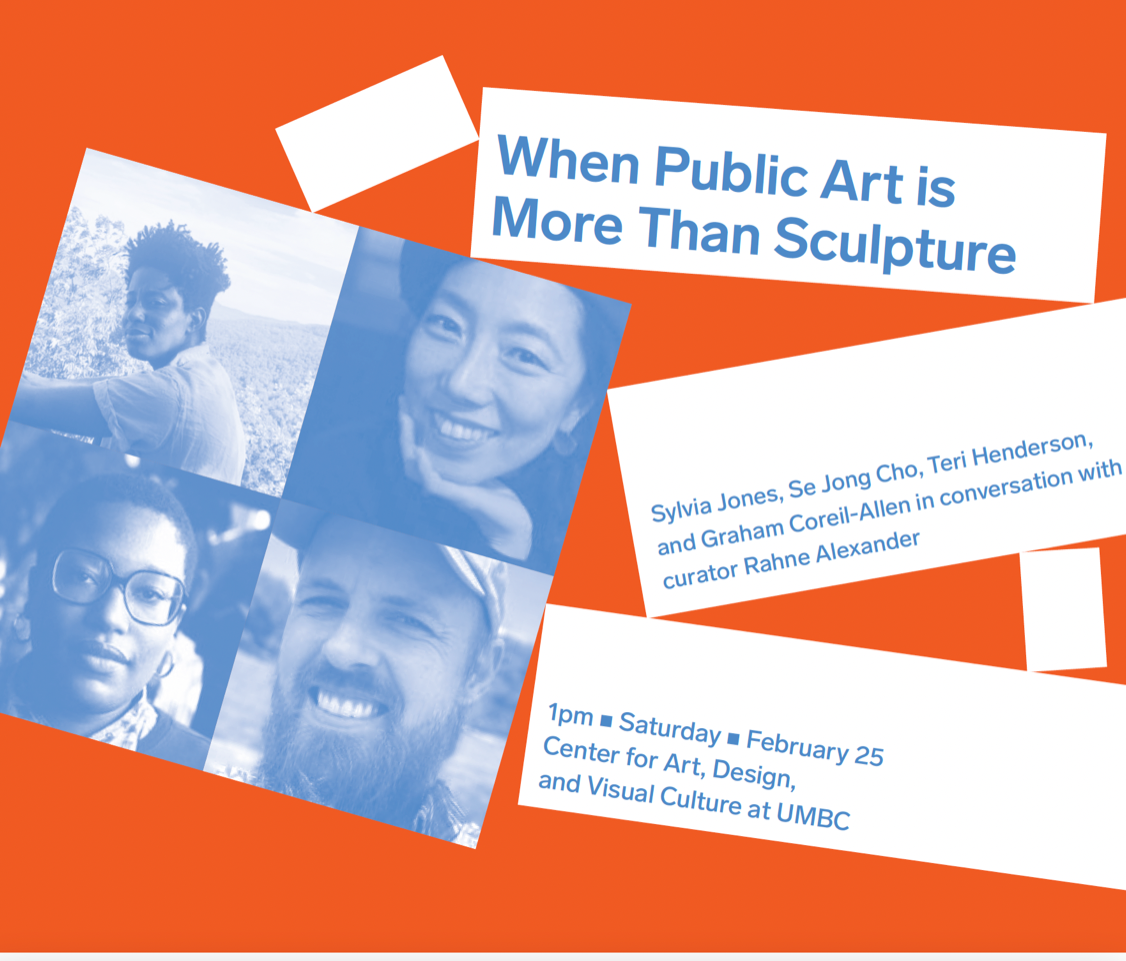 When Public Art is More than Sculpture convenes a vibrant discussion on these questions and more featuring four pillars of Baltimore’s cultural landscape — painter and environmental engineer Se Jong Cho; poet and educator Sylvia Jones; public artist Graham Coreil-Allen; and Teri Henderson, Arts and Culture Editor of Baltimore Beat — facilitated by Rahne Alexander (UMBC IMDA MFA ’21).