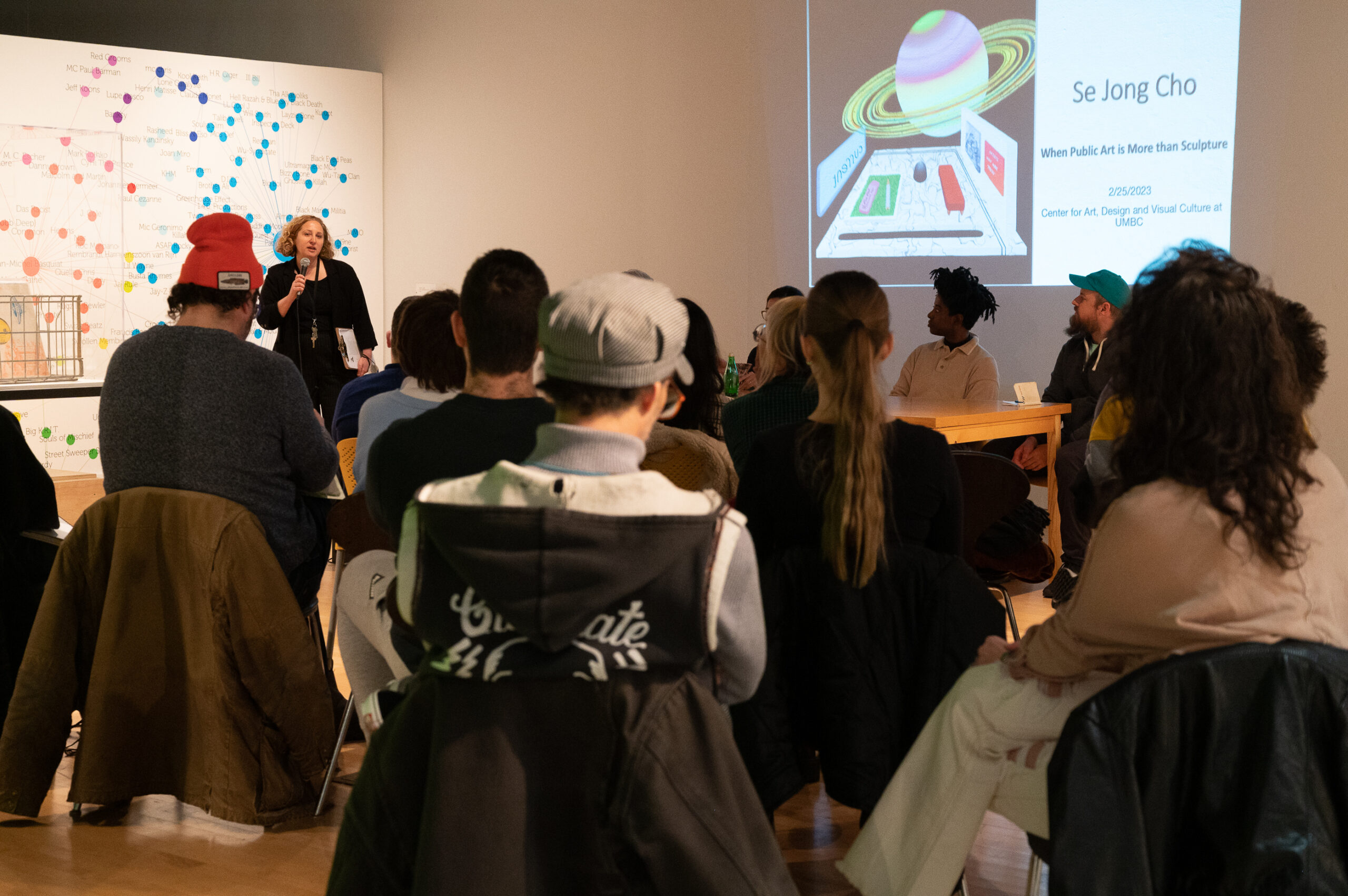 On December 5, the Center for Art, Design and Visual Culture celebrated the release of “Cockeysville to Baltimore,” a special booklet accompanying the exhibition “Levester Williams: All Matters Aside,” which had been on view since September 20. The exhibition was curated by Lisa D. Freiman, professor of art history at Virginia Commonwealth University.