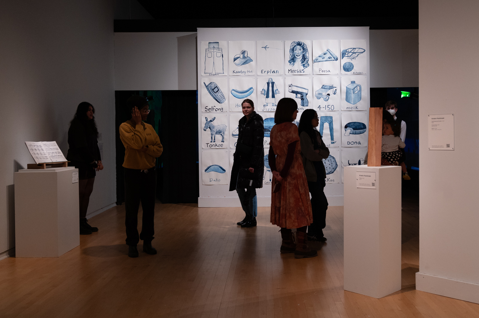 “Tahir Hemphill: Rap Research Lab” showcased an artist who proudly occupied a space that he described as the “hybrid area between art, technology, social engagement, and interdisciplinary research.” A technologist, researcher, facilitator, designer, and artist, Hemphill’s UMBC faculty fellowship in Visual Arts from 2021-2023 fostered experimentation and learning through visual and material explorations of geographies of Hiphop.